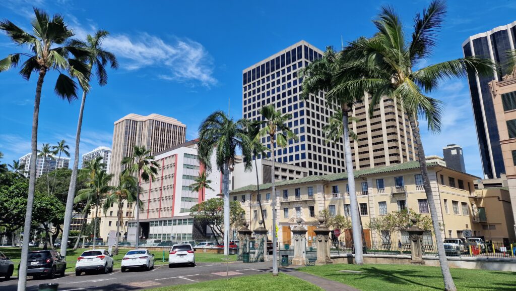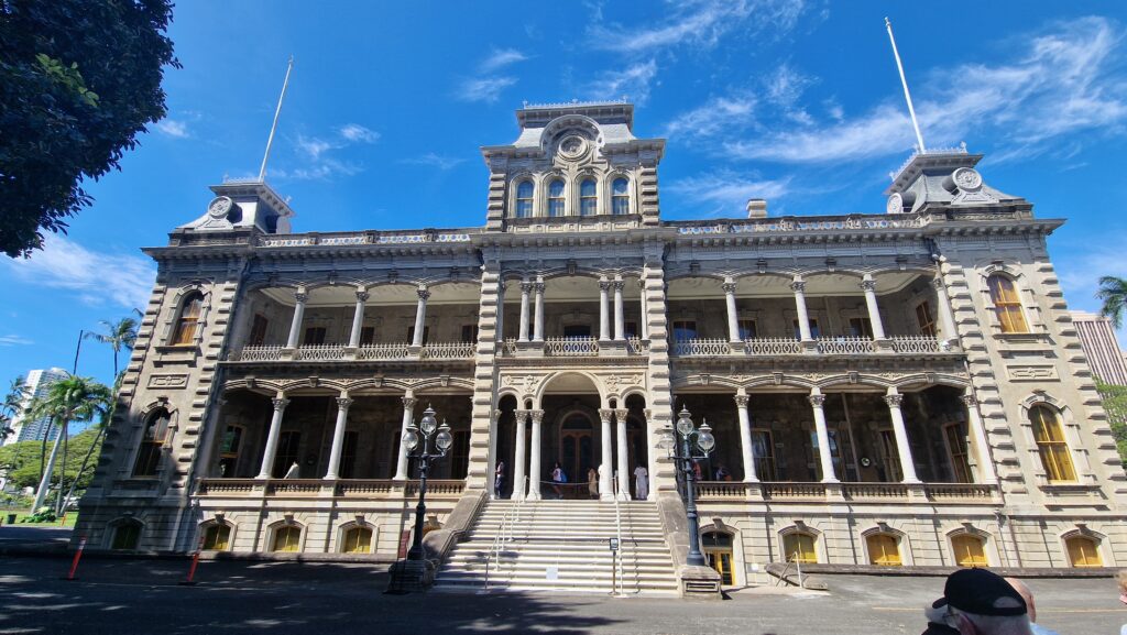After 5 days at blue Pacific Ocean today in the morning we reached port of Honolulu. The immigration control was very quick and soon we started the walk under the huge, shady trees to the palace of Queen Iolani. I was here several times, so no reason to pay 28 USD for one more entry: