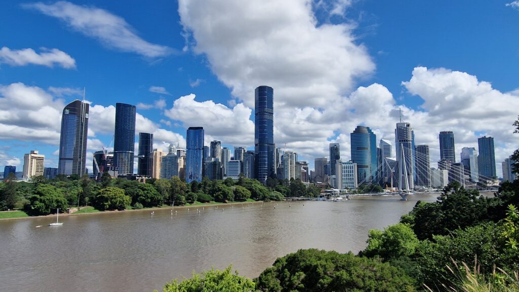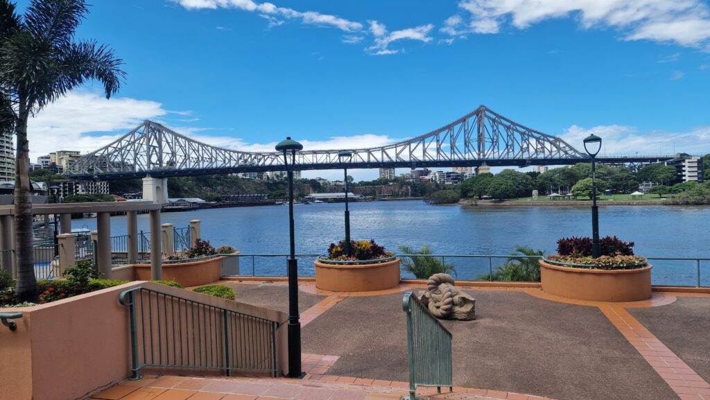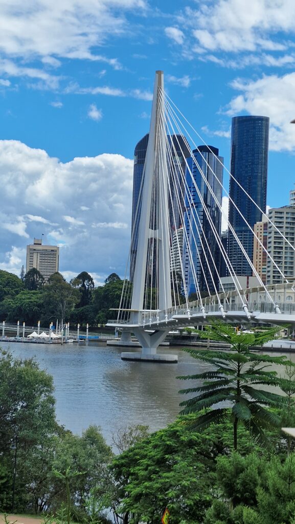 Downtown Brisbane is nicely located pn the river. I had 4 hours to show my companion the city landscape. Nice nature and the elegant river bridges….