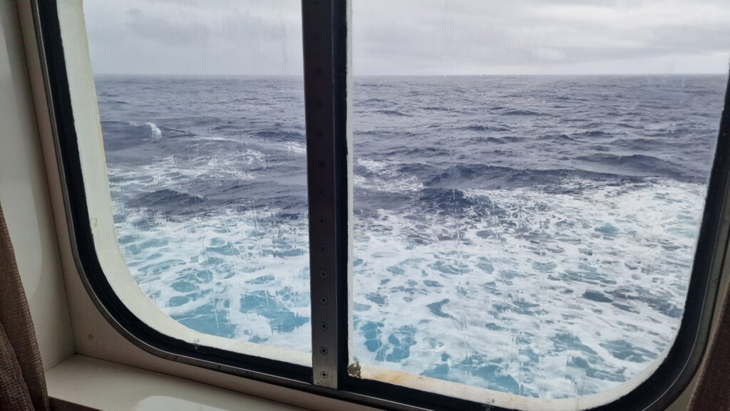 Day at sea. It is visible on the monitor in our cabin that instead sailing directly to Noumea we turned far north. Today captain announced that weather situation improved so we can sail back to the New Caledonia’ island of Lifou. But visit to Noumea is cancelled because we lost a lot of time. I have been in Noumea already twice, but my companion will be not happy…