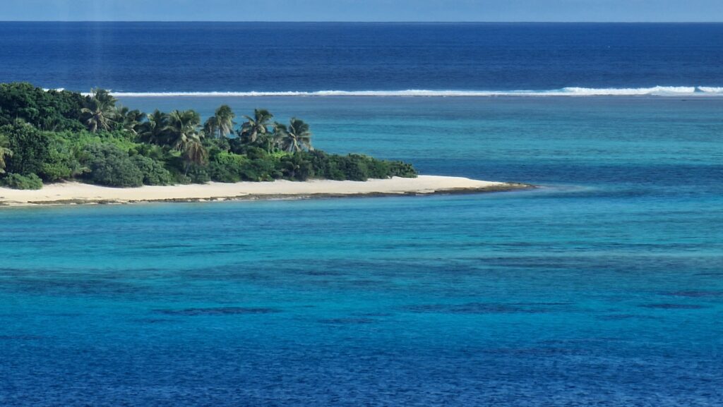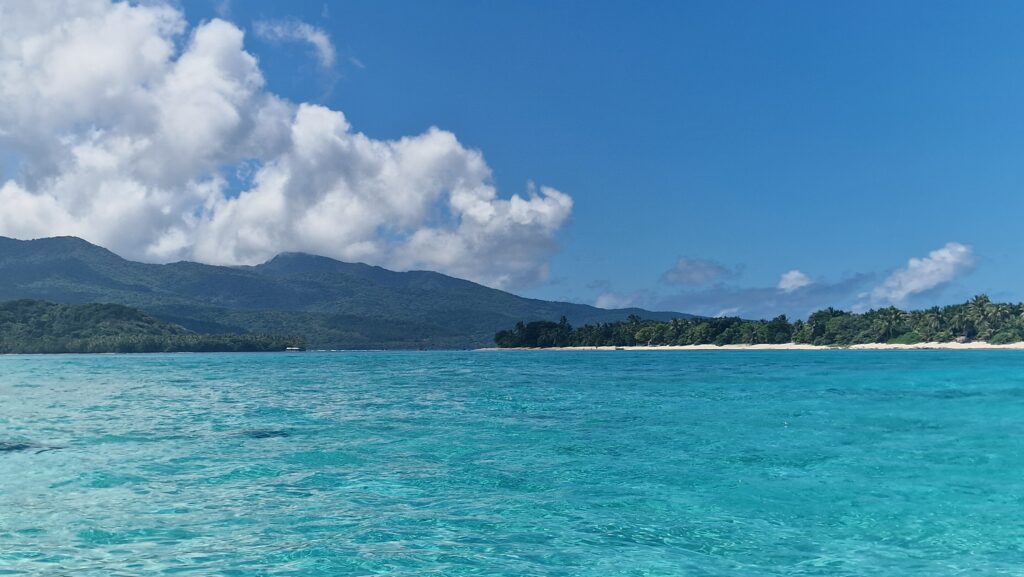 Even if there are clouds over the high island next to Mystery on this small island the sun is shining!