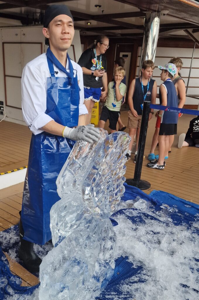 There are dance lessons and different demonstrations all day long. One of them was ice carving performed by one of our Philippino cooks. This was an eagle in ice: